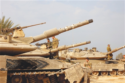 12月27日在加沙边境以色列一侧拍摄的以军部队。 新华社发
