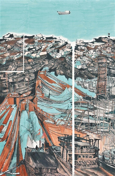 《海南渔港》(中国画)