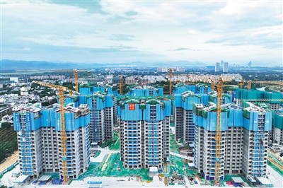 12月26日,俯瞰三亚市海棠湾林旺中安置区(一期)施工现场,3号地块已全部封顶。王将就 摄