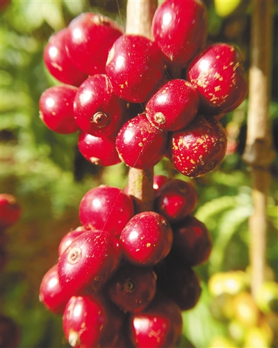 “这样打理,咖啡树才能够把充足营养供应给老枝。”王世贤从老枝条上摘下一颗成熟的咖啡豆掰开后说,“这老枝上结出的咖啡豆颗粒饱满,果汁浓稠,品质非常好”。