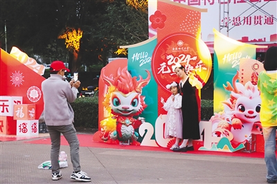 在桂林洋校区,信息科学技术学院极具科技感的紫色大门映入眼帘;经济与管理学院“新春大吉,龙马吉祥”的红色游园门彰显着元旦喜庆的节日氛围,栩栩如生的锦鲤预祝新的一年龙凤吉祥、万事如意;地理与环境科学学院采用唯美的月牙形游园门,极具国风韵味的书法和灯笼,同学们纷纷上前合影留念。