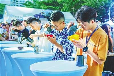8月25日,“SANYA咖潮一夏”2023三亚咖啡文化节举办,来自全国各地的拉花秀冠军在表演。