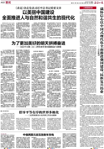 同日,国务院总理李强同俄罗斯总理米舒斯京互致新年贺电。李强表示,在习近平主席和普京总统的战略引领下,中俄新时代全面战略协作伙伴关系持续健康稳定发展,双方各领域务实合作不断深化。中方愿继续同俄方落实好两国元首达成的重要共识,争取更多务实合作成果,为两国关系发展注入新动力。米舒斯京表示,2023年,俄中总理第二十八次定期会晤取得丰硕成果,俄方愿同中方保持建设性沟通,推动双边合作迈向更高水平。