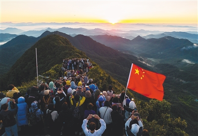 1月1日,游客登上尖峰岭,迎接新年的第一缕阳光。本报记者 李天平 摄