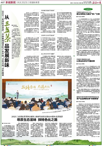“海南茶产业大有可为。”中国农业科学院茶叶研究所原副所长、国家茶产业科技创新战略联盟理事长鲁成银认为,当下海南可以做好“茶+”这篇大文章,通过与贸易、文化、研学、民宿、展示、节庆、演艺等业态融合发展,推进茶文化、茶产业、茶科技“三茶”与旅游全面深度融合,提升海南茶产品价值。