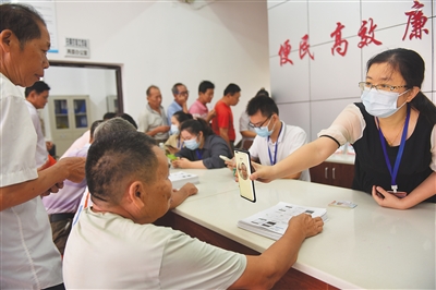 新兴镇土锡村,行政审批部门工作人员为群众办理老人优待相关业务系统录入工作。当地坚持把服务下沉基层,通过在基层设立审批服务点、送服务下乡等,让老百姓在乡镇农村就可便捷办理审批事项。