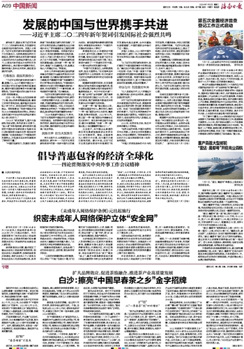 对于习近平主席在新年贺词中有关共建更美好世界的论述,美国库恩基金会主席罗伯特·劳伦斯·库恩深表认同。他说:“在当前国际局势动荡不安的背景下,习近平主席明确表示中国将承担起大国责任,与国际社会共同努力,促进世界和平和人类福祉,这对世界非常重要。”