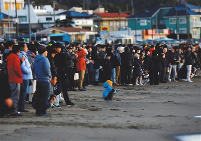 1月1日,人们在日本三浦等待日出。 新华社/路透