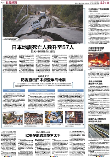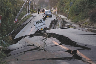 图为1月2日在日本石川县能登半岛拍摄的在地震中损毁的道路。 (本栏照片均由新华社发)