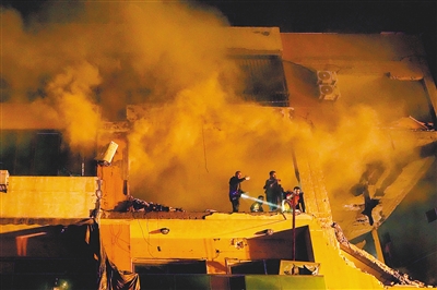 1月2日,救援人员在黎巴嫩贝鲁特南郊的以色列无人机袭击现场工作。新华社/美联