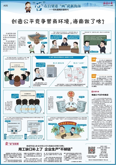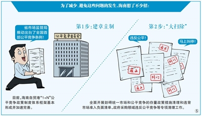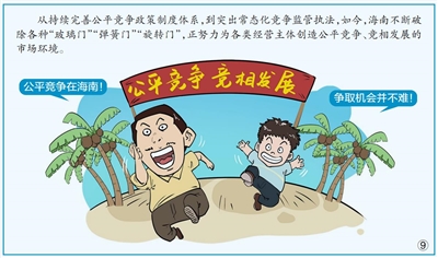 近年来,围绕营造公平竞争、竞相发展的市场环境,海南下足了功夫。立法上建章立制,为市场竞争立规矩;执法上加强监管,给经营者划边界;开展专项行动,发布典型案例……通过综合施策,不正当竞争行为受到了遏制,公平公正的市场秩序越来越受到公众的认可。