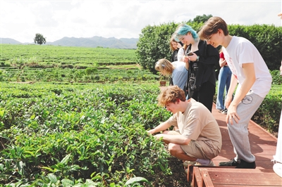 ①俄罗斯青少年在白沙了解茶树种植管护技术。符妙瑾 摄