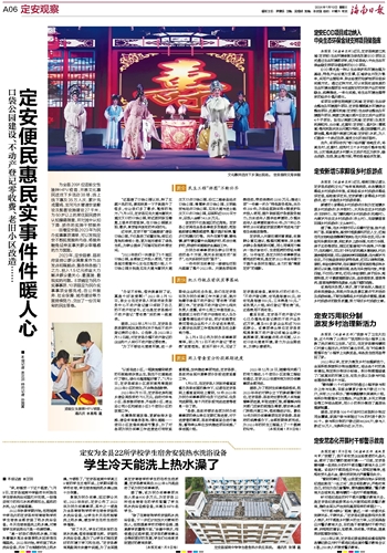 聚焦为民办实事,回应群众关切,2023年年初,定安公布了2023年为民办实事事项,其中之一便是为全县寄宿制学校学生宿舍安装热水洗浴设备,让学生冬天在校能够洗上热水澡,增加学生在校生活的幸福感。