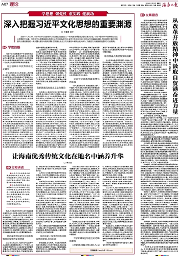 如今,海南正在加快推进国际旅游消费中心建设,离不开地名历史文化的支撑。讲好海南故事,需要讲好地名故事,丰富和挖掘本地历史文化的旅游资源。