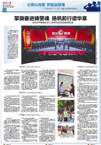 回望刚刚过去的2023年,海南警方牢记对党忠诚、服务人民、执法公正、纪律严明的总要求,忠实履行捍卫政治安全、维护社会安定、保障人民安宁的新时代使命任务,将“平安”二字镌刻在琼州大地,镌刻在人民群众的心间,以高水平安全保障海南自贸港经济社会高质量发展。