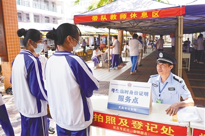 2023年6月10日高考期间,文昌公安在考点解答考生咨询。