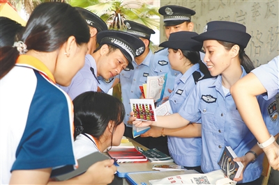 定安警方深入校园,向广大师生宣传禁毒知识。