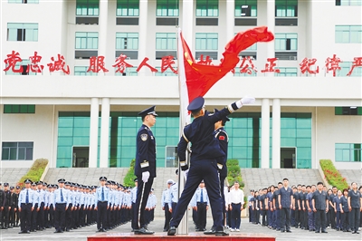 定安警方庆祝中国人民警察节,举行“升国旗、迎警旗”仪式。 本组图片均由定安公安局提供