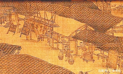《清明上河图》(局部)中小酒店前卖馒头。资料图