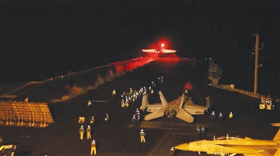 图为1月12日美国战机从甲板上起飞执行打击胡塞武装目标的任务。 新华社/路透