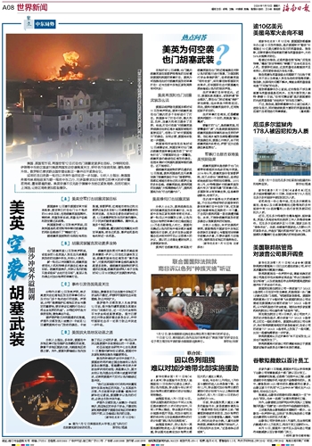 美国、英国军方说,两国空军12日打击也门胡塞武装多处目标。沙特阿拉伯、伊朗等中东地区国家对美英两国发动空袭高度关注,呼吁各方保持克制,避免局势升级。俄罗斯已要求联合国安理会就这一事件召开紧急会议。延宕近百日的新一轮巴以冲突外溢效应进一步加剧。分析人士指出,美国国务卿布林肯刚结束为期一周的中东之行,对多国要求加沙地带立即停火的呼吁置若罔闻,遭到普遍质疑。美英空袭不仅无助于缓解中东地区紧张局势,反而可能火上浇油,让地区局势更加危险复杂。