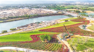 近日,航拍改造中的三亚海棠河水系综合治理工程项目。目前,该工程启动区已完成建设,其他各项施工正稳步推进。该项目北起椰子洲岛、南至铁炉港,河道全长共计13.16公里,景观设计面积约214万平方米。启动区是项目一期4.43公里的示范段,景观设计面积约7.6万平方米。本报记者 张茂 摄