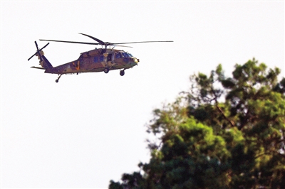 在以色列南部靠近加沙地带的地区拍摄的以色列军用直升机。 新华社/法新