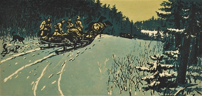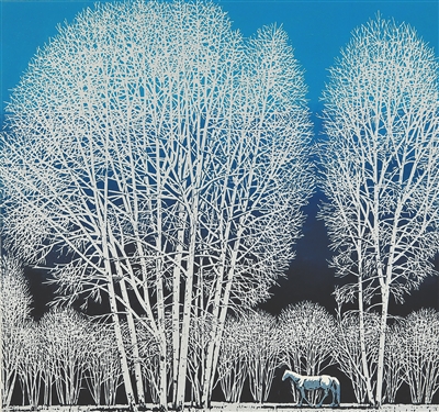 父亲进入老年后,我曾帮他拓印大幅作品。两人早早起来,简单吃两口饭就开始。干到十点左右,稍休息,坐下来喝口茶,吃几片橘子。我体会到俭朴的价值,这种有规律的工作生活方式成就了他一生的艺术硕果。2020年1月,我赶回哈尔滨,父亲旧病已加重。有一天,我陪他在楼下散步,走到大门处,他突然糊涂了,拉着我往外走,说有人约好看画,我说:“爸,该回家吃饭了。”他回我一句:“艺术最重要!”还有一天,他坐在椅子上,闭着眼,右手直伸向前,手指微动,似在拓印,又像在素描……