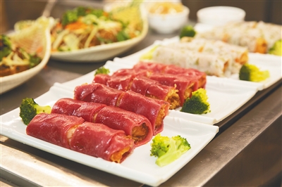 海口一老爸茶店内的红米虾仁肠粉。本报记者 陈若龙 摄