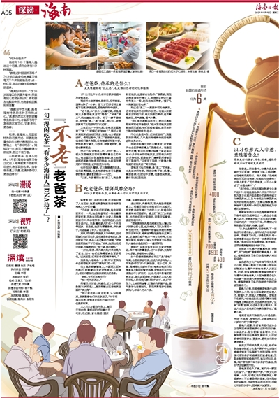 经营茶店11年的邱天颜,在店里见惯了人生百态,她更能具象地感知老爸茶在海南人心中的分量。