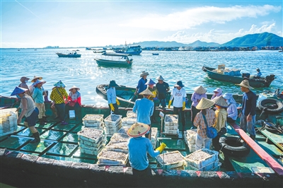 陵水新村疍家渔港一派繁忙景象。本报记者 王程龙 摄