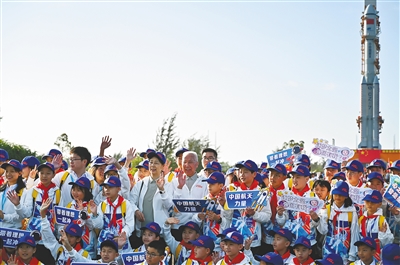 1月15日,参加“争做新时代好队员”——少先队员与载人航天面对面活动的少先队员们在文昌航天发射场合影留念。新华社记者 樊雨晴 摄
