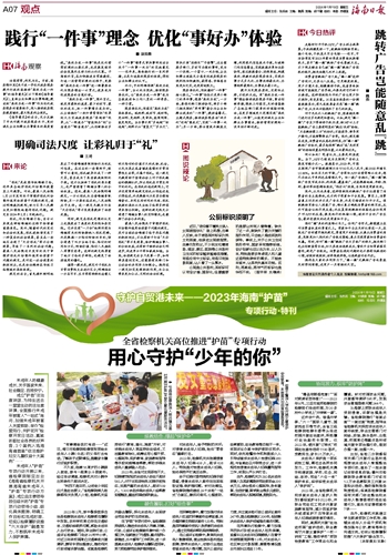未成年人的健康成长,关乎国家未来、社会稳定、百姓安宁。成立“护苗”法治宣讲团,为师生送去一堂堂生动的法治宣讲课;全面推行未成年被害人“一站式”询问,加强未成年被害人关爱救助;举办“检爱同行,共护花开”检察开放日活动,真诚听取社会各界的好声音;3个案例入选海南省首届“依法维护妇女儿童权益十大案例”……