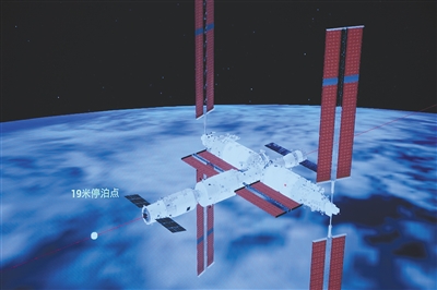 1月18日在北京航天飞行控制中心拍摄的天舟七号货运飞船与空间站组合体进行交会对接的模拟图像。 新华社发