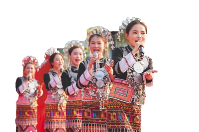 海南少数民族姑娘在舞台上演唱传统民歌。本报记者 王程龙 摄