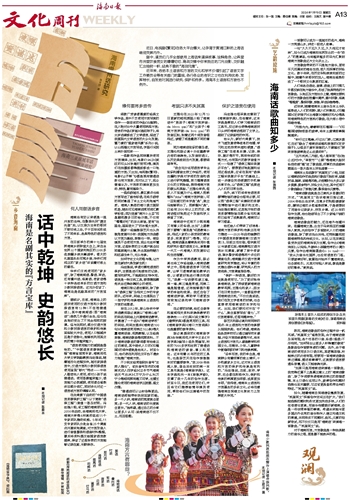 海南话中还有不少既有趣又有意义的俗语,比如“上厝教囝下厝精”(意思是“邻居教育小孩,相近人家的小孩受到的教育更多、效果更好”)等等。可以说,海南话蕴含着兼具实用价值和研究价值的语言文化,承载着一代又一代海南人的发展印记和生活智慧。