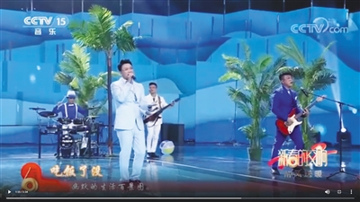 琼海本土音乐人组成的原创乐队在央视音乐频道《新春的交响》栏目,演唱海南话原创歌曲《琼海溜》。资料图