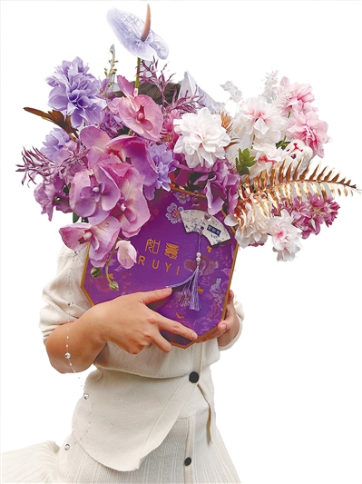 “设计花礼使用的仿真花材或鲜花种类较为丰富,关键看如何搭配和赋予它何种寓意,价位从50元到688元不等。”沐青告诉记者,设计型仿真花礼视觉张力更强,也更具年味,是不少顾客的首选。