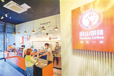 ① 市民在母山咖啡馆万象城店购买咖啡饮品。(资料图)