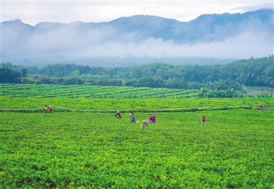在白沙黎族自治县牙叉镇,海南农垦白沙茶业股份有限公司(以下简称海垦白沙茶业公司)生产车间里,新采摘的茶青经过摊青、杀青、初揉等9道流程,缕缕清新的早春茶香如约而至。