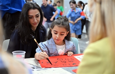 春节临近,近百名来自美国、俄罗斯、巴基斯坦等国家的外国友人在海口体验中国传统文化,共迎新春佳节。新华社记者 郭程 摄