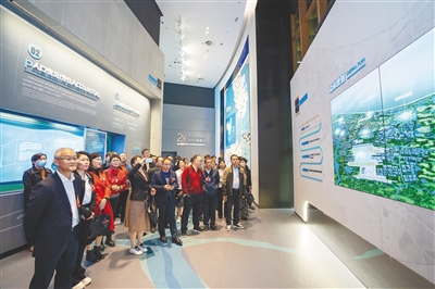 步入海口江东新区展示中心,移屏技术、无边际裸眼3D智慧沙盘等特色展示,引得政协委员们驻足观看,不时掏出手机拍摄记录。考察团先后参观了“国家战略新区设立”“高起点规划高标准建设”等展区,从“第一视角”感受江东新区的发展脉动。