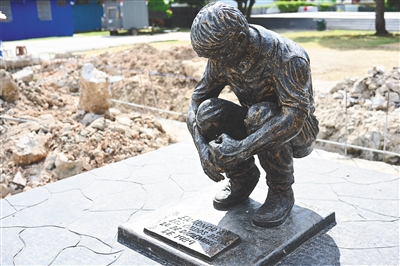 图为在巴拿马首都巴拿马城拍摄的一尊雕像,雕像前的牌子写着“纪念1989年12月20日的遇难者”。新华社发