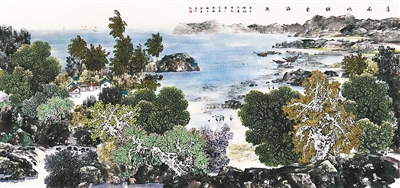 “深入生活,扎根海岛”一直是海南美术家们的优良传统,他们用画笔描绘自然和生活。陈茂叶的《春韵》《琼岛之韵》等以大写意的语言方式,在不拘一格的表象下,以破墨、泼墨、熏染、皴擦技巧表现海南的美丽花鸟,探索现代水墨语言。邓子芳的《黎寨秋熟图》《红棉竞放艳黎山》、阮江华的《春风吹绿南海湾》《自贸港春韵》、吴东民的《琼南春色》等都是用不同的笔墨语言对多彩海南尽情抒写。王家儒的油画《海口钟楼》《家园》、王锐的《家在对岸》、林先动的水彩画《野菠萝》等作品以娴熟的诗意表现技法,将生活的感悟与美景有机地融合,在画面上流露出对视觉语言的独特感受与生活的亲切感。林明俊的综合材料绘画《风帆》以抽象的艺术语言表达了海洋文化的古老、厚重和久远,让我们充满无尽的想象。吴地林的中国画《海的乐章》刻画了他所感知的海底世界,用艺术的语汇重构下呈现出一个神秘别致的海洋生态。郭红雨的版画《谷雨回声》用优美的黄绿色调捕捉了海南的渔业场景。卢向玲的重彩画《海南·花鸟序》以现代、别致的构图把热带植物和蓝色海洋融合一体,高贵、华丽的色彩把热带的特色表现得淋漓尽致。马飞的中国画《儋阳颂》则用长卷的形式,从亭台楼阁到崇山峻岭,从湖畔河流到悠远的碧海,在氤氲弥散间书写了海岛西部风光。谢源璜的油画《老街的春天》用强烈、自由的色彩语言表达了海口骑楼老街繁华的景象。陈海的中国画《尖峰岭》水汽氤氲,用厚重的笔墨效果酝酿了一幅魅力十足的尖峰岭山水画。梁增权的中国画《东方神韵》、杨超的油画《流水坡的深秋》将逝去的历史风景永久定格在画面之上。周铁利的油画《生命·阳光》、黄海洋的油画《深山胶林》、海哓龙的油画《呼吸山水》、李澎霖的油画《五公祠印象》和吴源的水彩画《春来早》等都表现了海南独有的美丽风景。