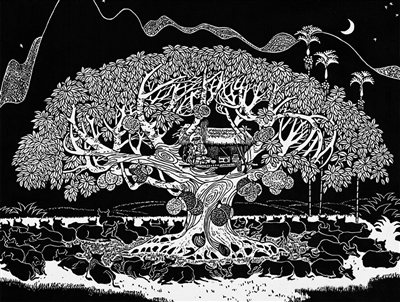 回顾早年的海南美术创作,当数版画成就较高, 例如邓子芳的《新月》、吴地林的《胶林的路》、陈茂叶的《黎家女》、张地茂的《海南风》、王统照的《甜蜜的季节》、董旭的《建设的旋律》、徐鸿才的《崖州城景观图》、杨全发的《晨鸣》。他们和陈桂花、王春雄等都是当时的版画作品创作健将。特别是1988年以后,郭红雨、陈为云、王楠、周杰等中青年美术家在老一代版画家的传统风格中成长起来,他们都创作过不少富有地域特色的版画作品,尤其是郭红雨,善于把北大荒版画和海南的黑白进行结合。