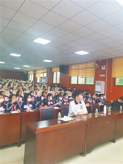 张运年与试点学校的学生一起听科学教育讲座。