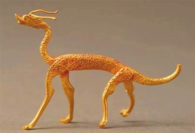 《全唐诗·第六四一卷》:从此百寮俱拜后,走龙鞭虎下昆仑。在陕西历史博物馆里,寻觅到了唐诗里的“走龙”,一组6条小金龙被称为赤金走龙。它是唐代文物,于1970年在西安市南郊何家村出土。