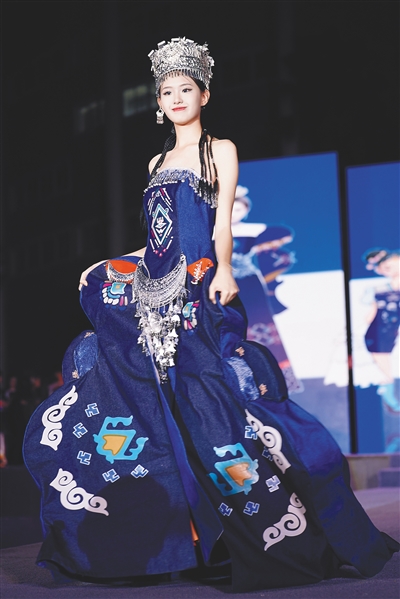 动物纹、植物纹、几何纹的图案沿着裙摆飞舞,经纬交织的黎锦被剪裁成华丽服饰……三亚学院艺术学院服装与服饰设计专业学生甘婧宜设计的作品“锦上黎裳”,让人眼前一亮。黎锦光辉艳若云。让更多人发现黎锦不一样的美,是甘婧宜创作的初衷。她说,“黎锦有丰富多彩的传统纹样,生动体现了黎族的民俗风情,是我创作‘锦上黎裳’这组服饰作品的灵感来源。”