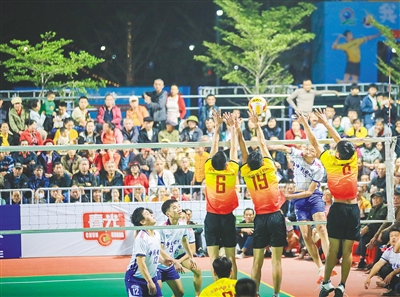近日,“九九杯”海南(文昌)村镇排球迎春赛在文昌市东郊镇下田村开打。海报集团全媒体中心记者 刘洋 摄