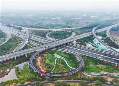 图为近期建成通车的东坡岭枢纽位于湛江市遂溪县,是沈海和兰海两条国家高速公路的交会点。新华社记者 刘大伟 摄